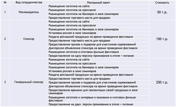 Организаторы Фестиваля размещают на своих носителях (сайт, баннеры, листовки и др.)информацию о Партнёре.
