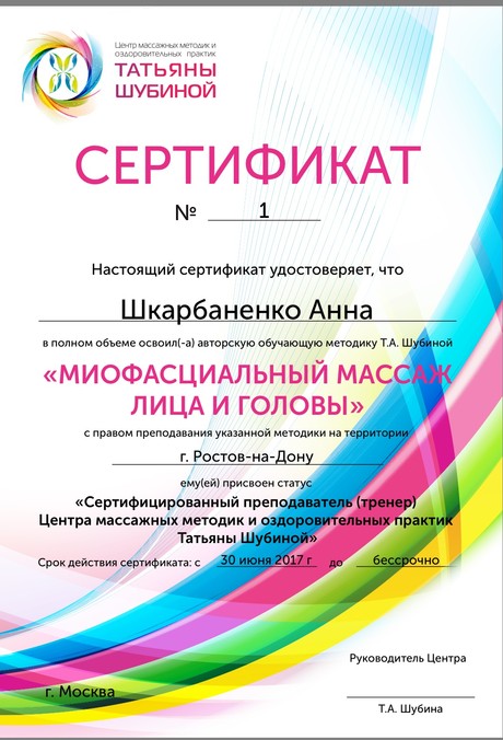 Миофасциальный массаж лица и головы - одна из уникальных авторских методик Татьяны Шубиной!